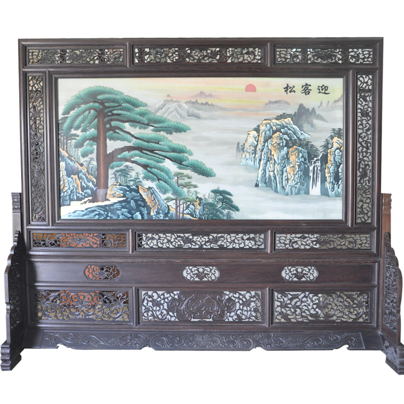 風(fēng)景玄關(guān)屏風(fēng) 雙面繡酒店隔斷 迎客松 手工刺繡 包物流精品推薦